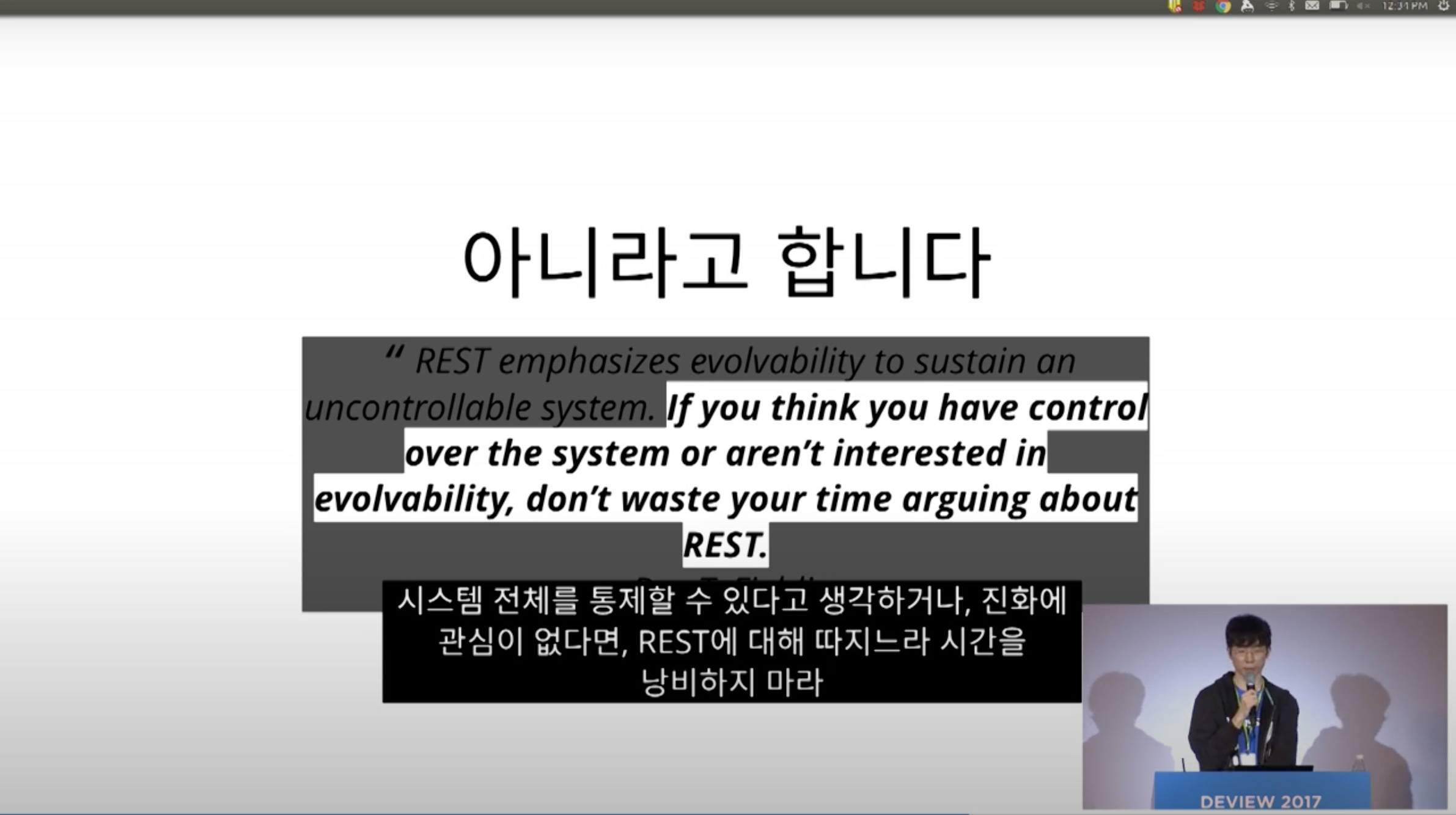 - Roy T. Fielding์ ์์คํ ์ ์ฒด๋ฅผ ํต์ ํ ์ ์๊ฑฐ๋, ํด๋ผ์ด์ธํธ์ ์๋ฒ์ ๋ ๋ฆฝ์ ์งํ(= ์๋ก์ ๋ณ๊ฒฝ์ด ์ํฅ์ ์ฃผ์ง ์์)์ ๊ด์ฌ์ด ์๋ค๋ฉด REST์ ๋ฐ์ง๋๋ผ ์๊ฐ์ ๋ญ๋นํ์ง ๋ง๋ผ๊ณ ํฉ๋๋ค. (๋์ ๊ทธ๋ฌ๋ฉด ์๋ฐํ ๋งํ๋ฉด REST๋ ์๋๋ผ๊ณ ํ๋ค์ ๐ )
